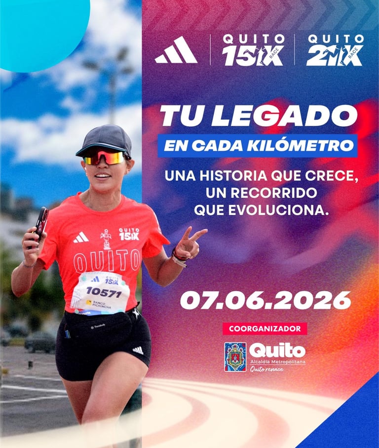 La Quito 21k es una celebración del running en la altura: recorridos que cruzan la ciudad de sur a norte, uniendo tradición, desafío y la energía de miles de corredores que buscan superarse en cada kilómetro.